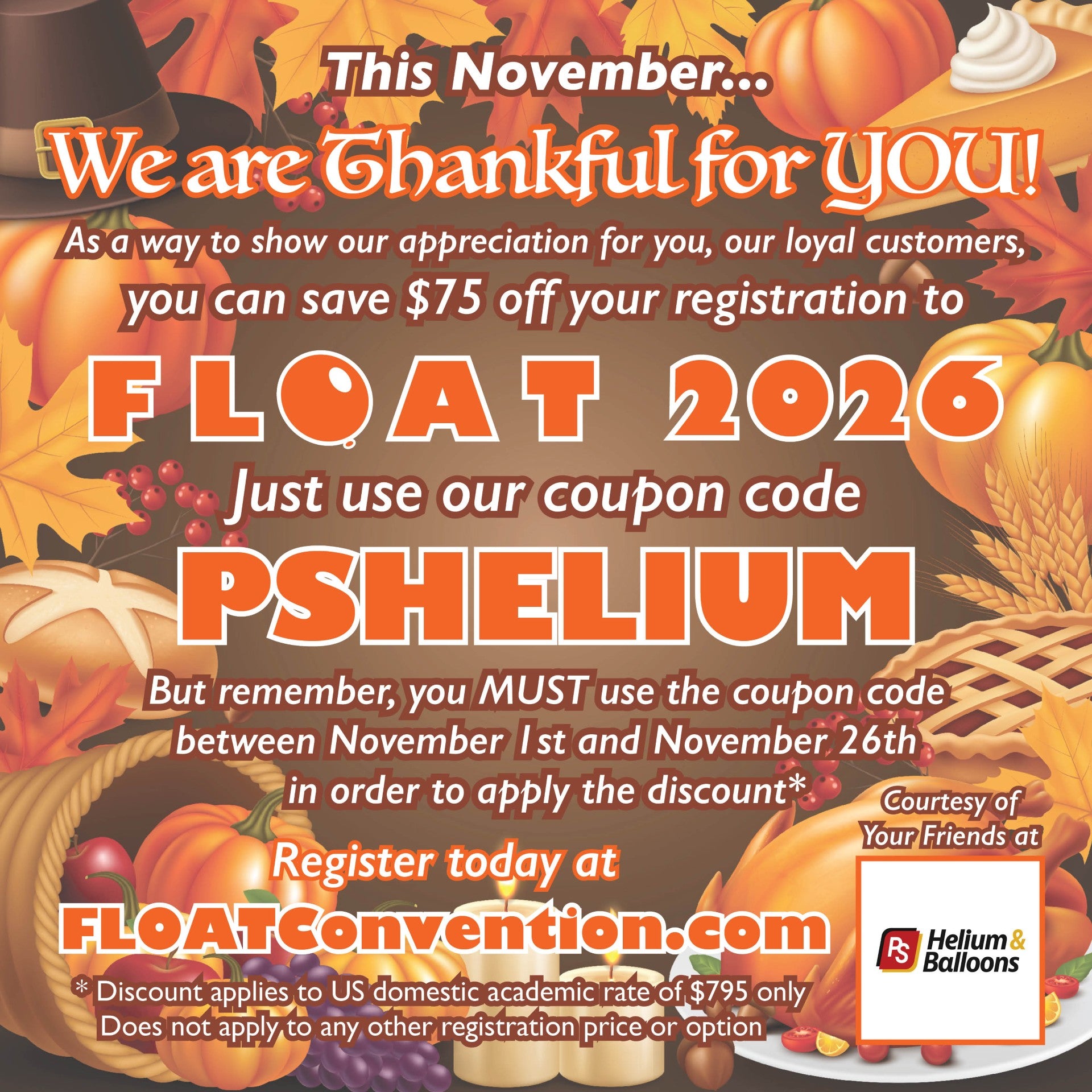 Register Nov. 1st thru Nov. 26th and Use code: PSHELIUM