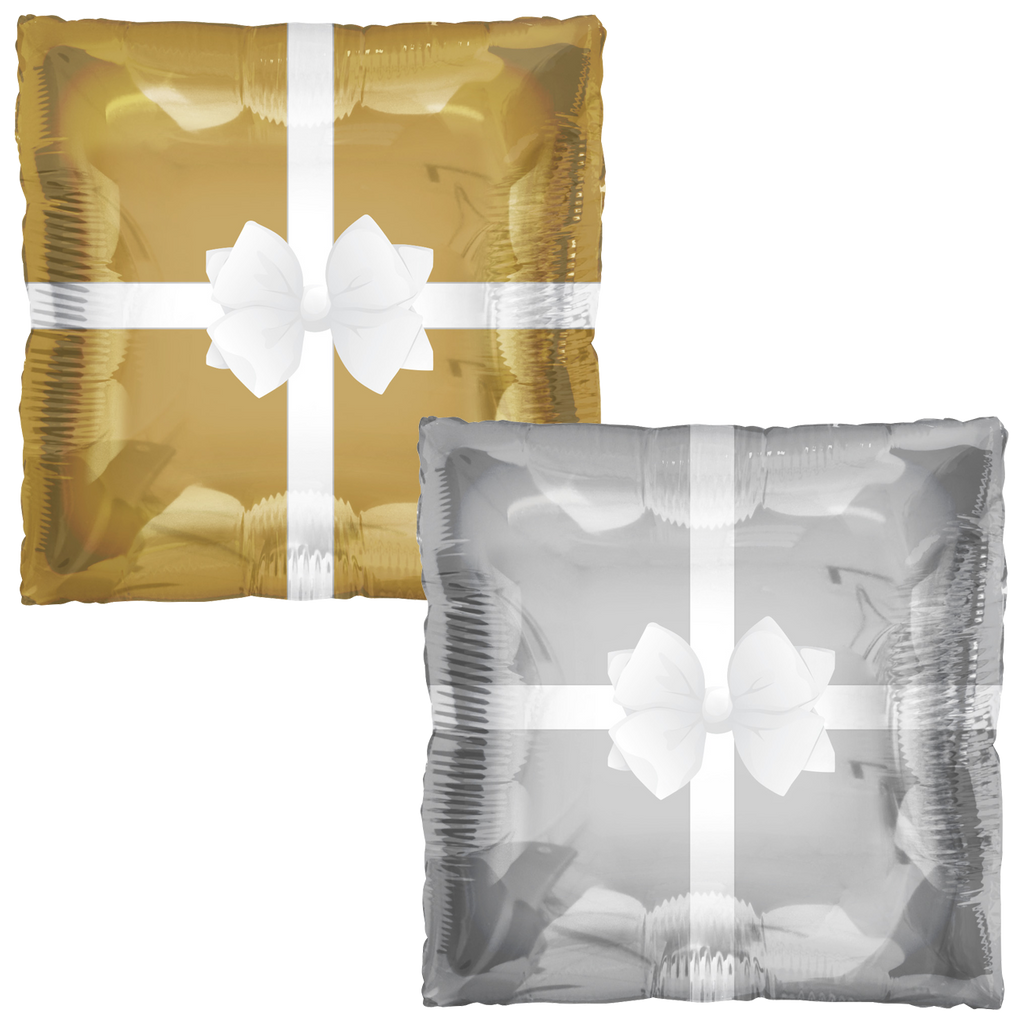 24" TUFTEX SQUARED Foil Balloon Present, 1 Side Gold, 1 Side Silver